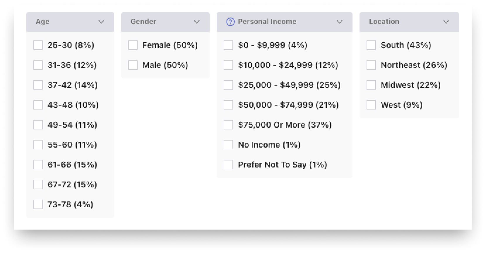 This feature is essential for understanding how your company's product/service value, purchasing power, or brand affinity changes between customer groups. By using these filters, pricing strategies can be precision-tuned to reflect the varied market landscape.