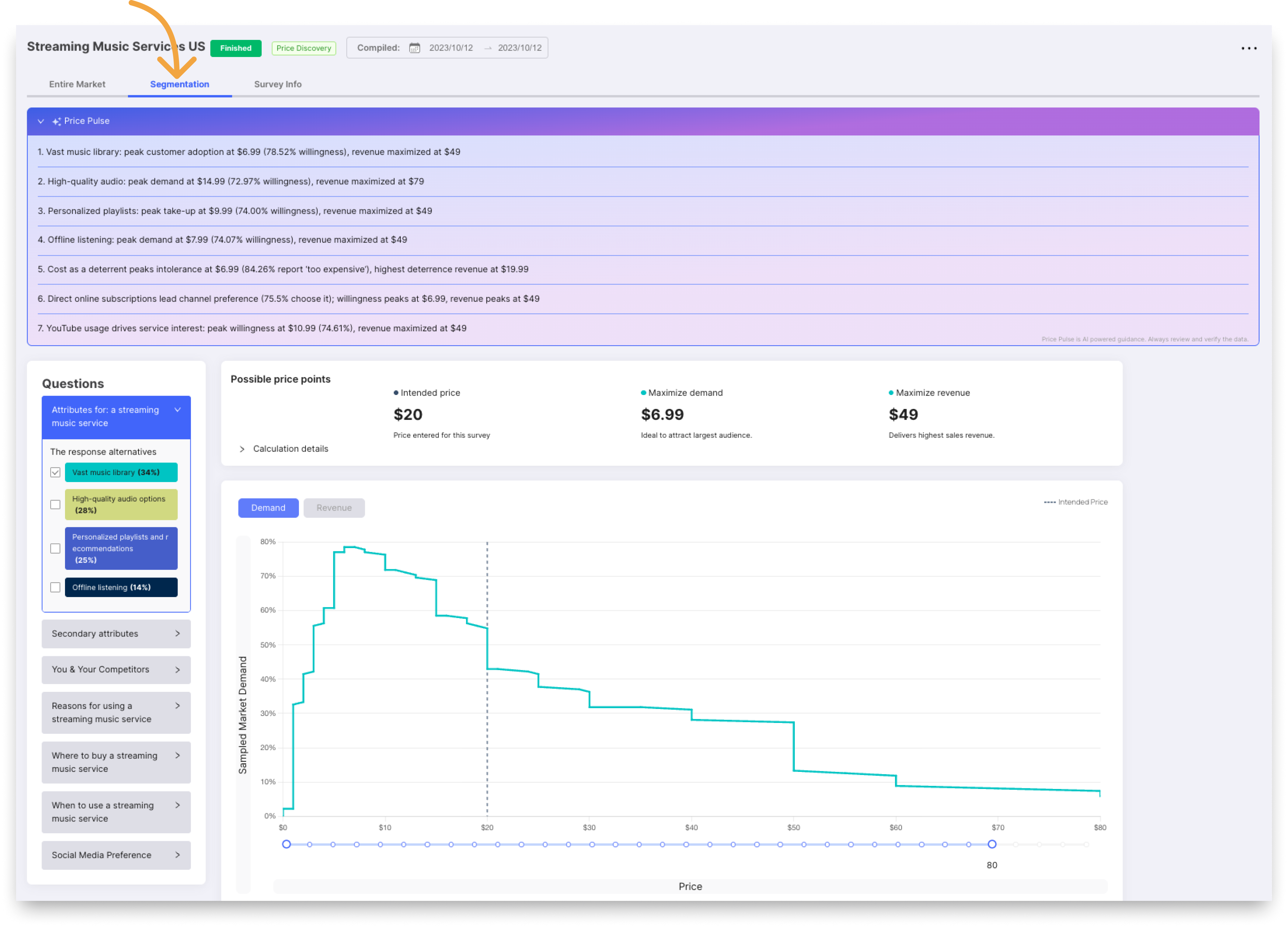 ℹ️ Note: Segmentation analysis is only available for Price Discovery studies.